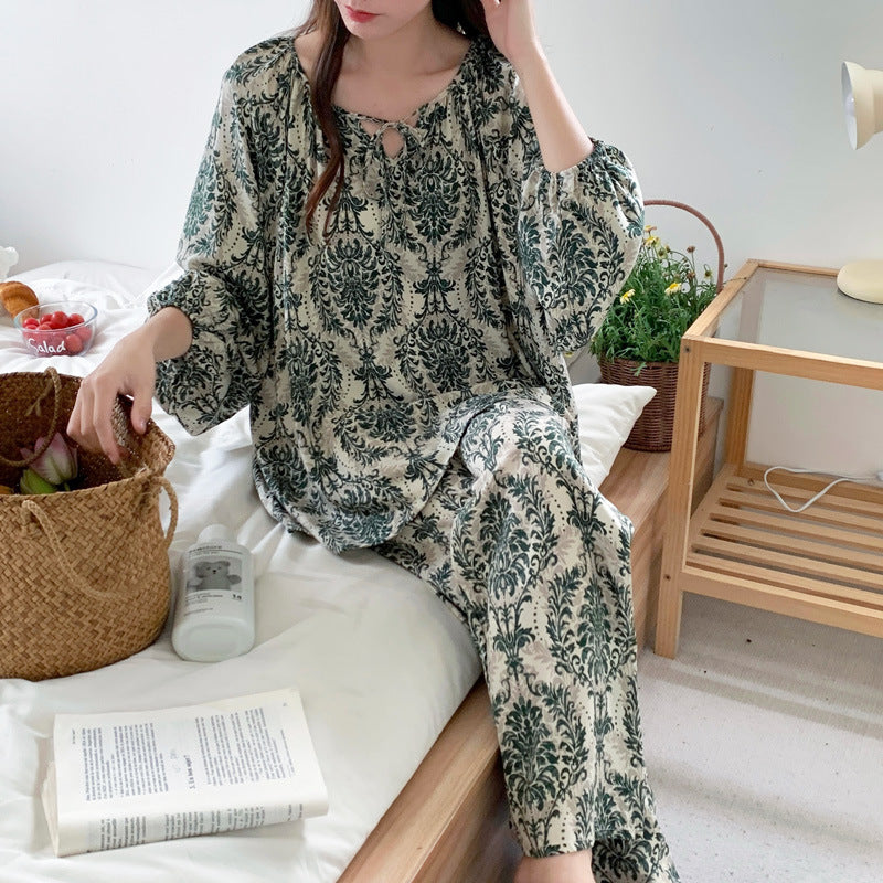 Artful Elegance: The exquisite oriental floral print and relaxed silhouette bring an effortless, graceful charm to your lounging moments.